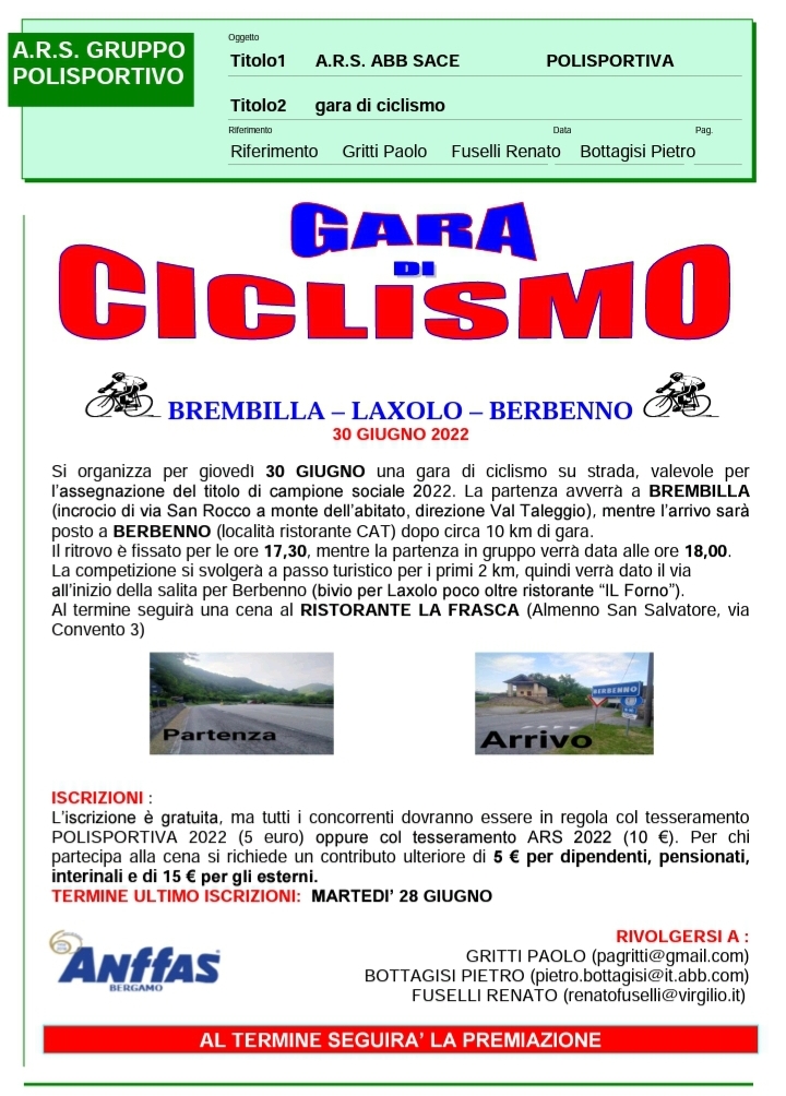 Si ritorna a pedalare con la gara di ciclismo 2022 Brembilla-Berbenno
