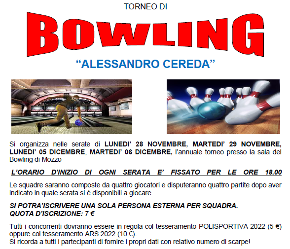 il gruppo ARS sport organizza l’annuale torneo di bowling