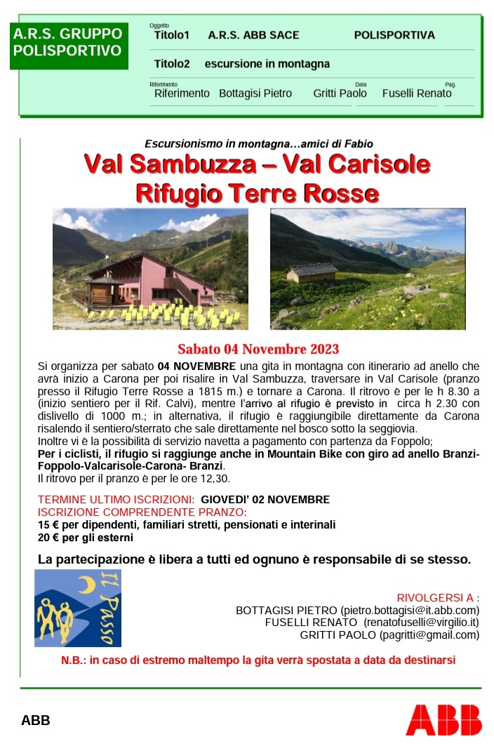 Escursione del gruppo Abb "Amici di Fabio" al rif. Terre Rosse in Val Carisole. Raggiungibile anche in mtb!