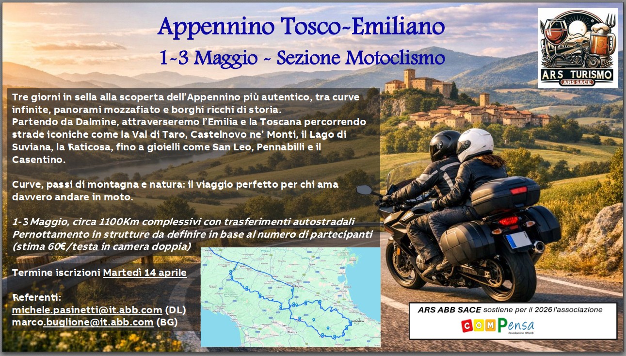 Partendo da Dalmine, attraverseremo l’Emilia e la Toscana percorrendo